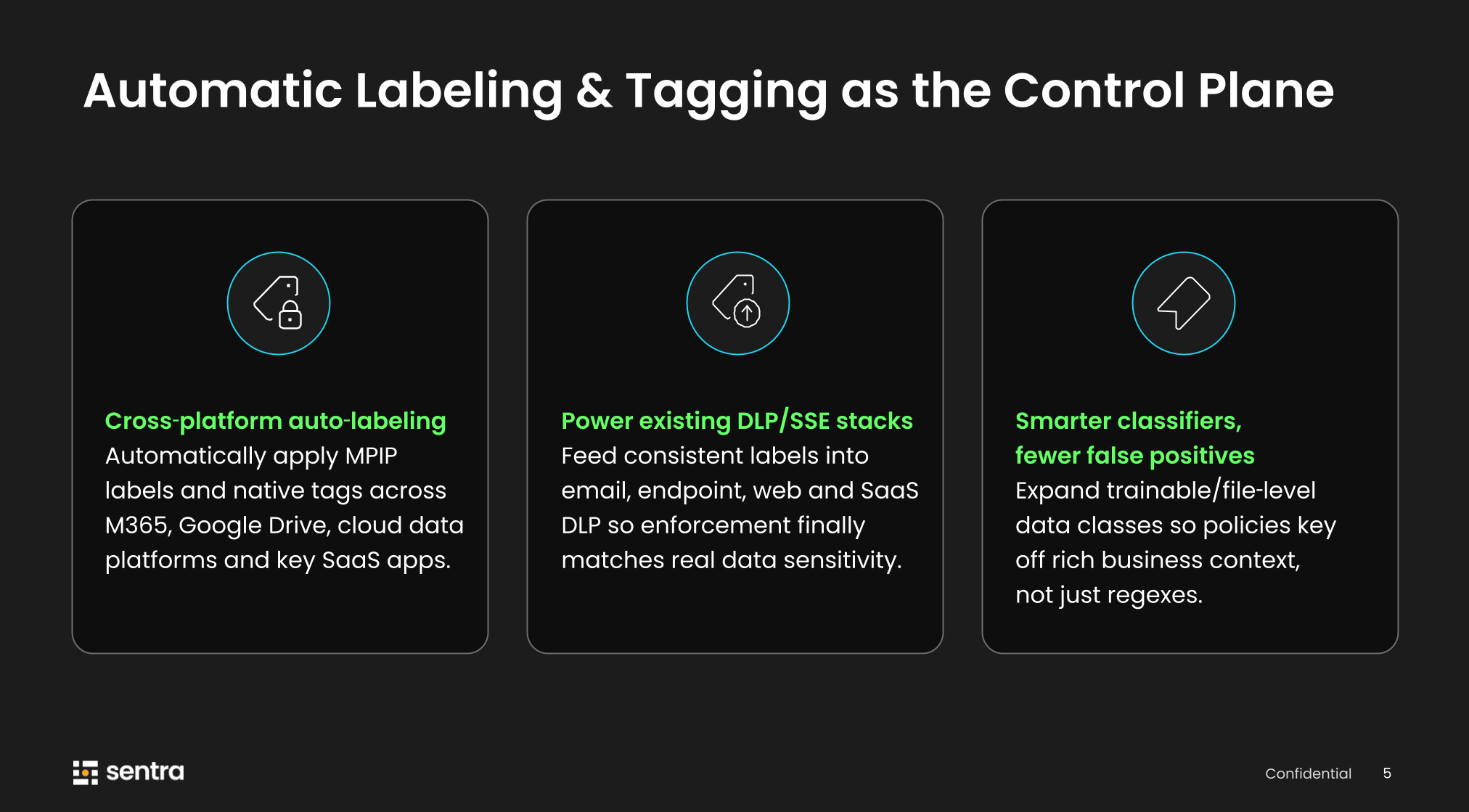 Strategically, this is how we move from DSPM-plus-alerts to cloud-native DLP and automated remediation at scale. Sentra discovers and understands the data, stamps it with the right labels, and your existing enforcement stack, plus our own remediation, ensures data is only used, shared, and accessed in ways that match its true sensitivity.